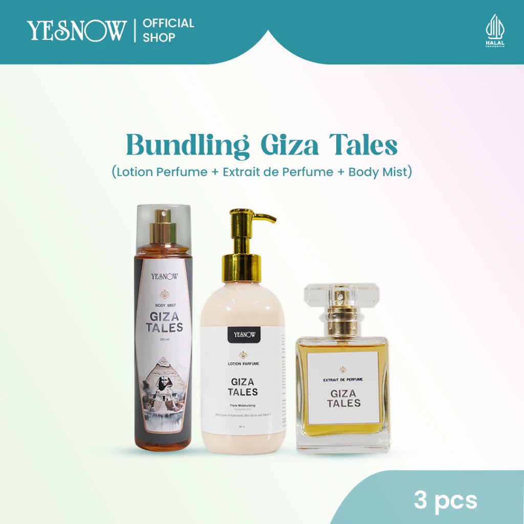 - Giza TalesKeharuman hangat dengan sentuhan freesia dan vanilla, menghadirkan kesan eksotis dan memikat seperti pesona gurun Giza. ( Aroma: oriental–vanilla | hangat | elegan )